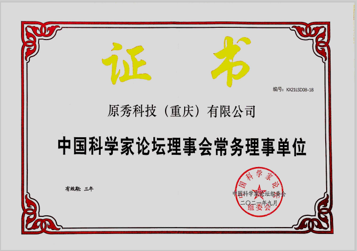 原秀科技榮獲中國科學(xué)家論壇理事會常務(wù)理事單位
