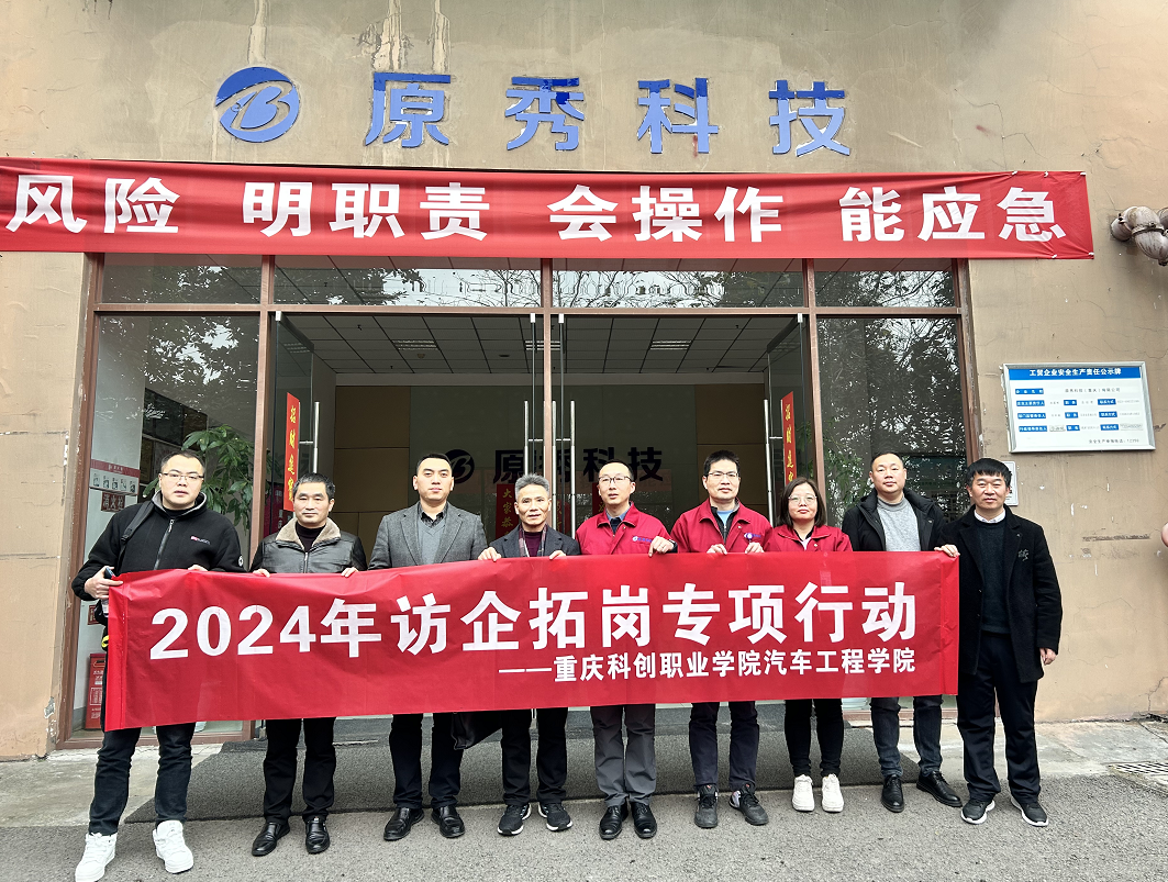 為進一步深化校企合作,為學(xué)生提供更多實踐機會,拓寬就業(yè)渠道,同時也為進一步做好企業(yè)人才戰(zhàn)略儲備,2024年1月17日,原秀科技(重慶)有限公司與重慶科創(chuàng)職業(yè)學(xué)院汽車工程學(xué)院鄒昌平院長/教授、黨總支書記柳良江、副院長曾德軍一行開展了主題為“訪企拓崗促進業(yè)”的專項活動。